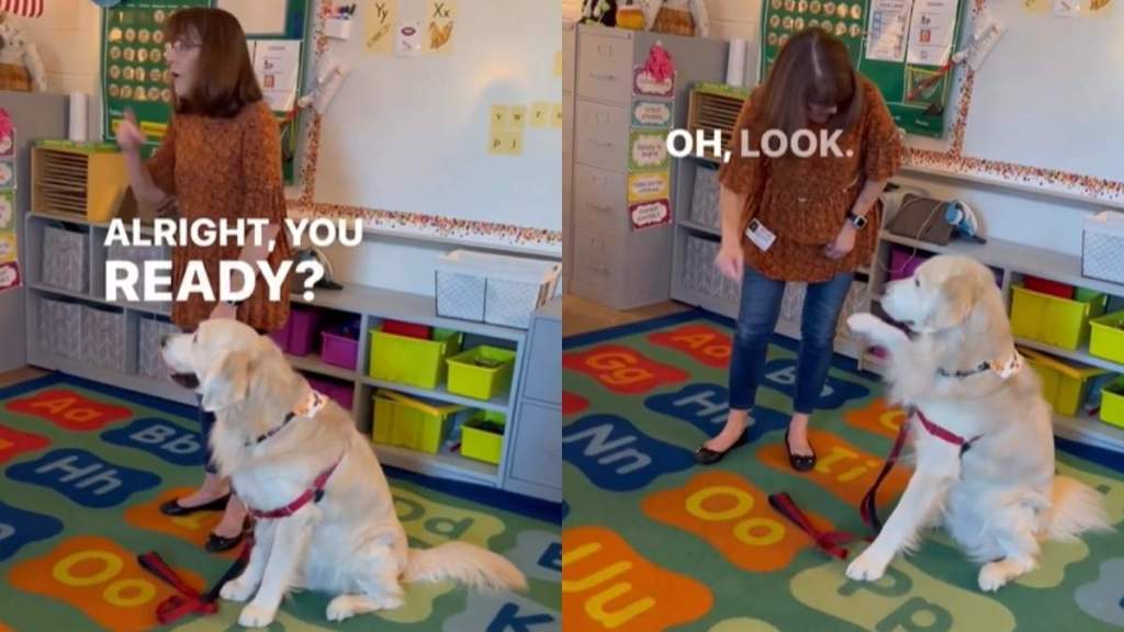 Imagine finishing a book and having your listener wave back at you with a fuzzy paw. Marcia Hayden, the dedicated mom behind @charliethetherapy, makes this a reality for students across the community. She brings her certified therapy dog, Charlie, into schools to help kids find their confidence through reading. Their latest video shows the polite Golden Retriever wrapping up a session in the most charming way possible. He isn’t just there for the snacks. He is there for the genuine bond he forms with every student.