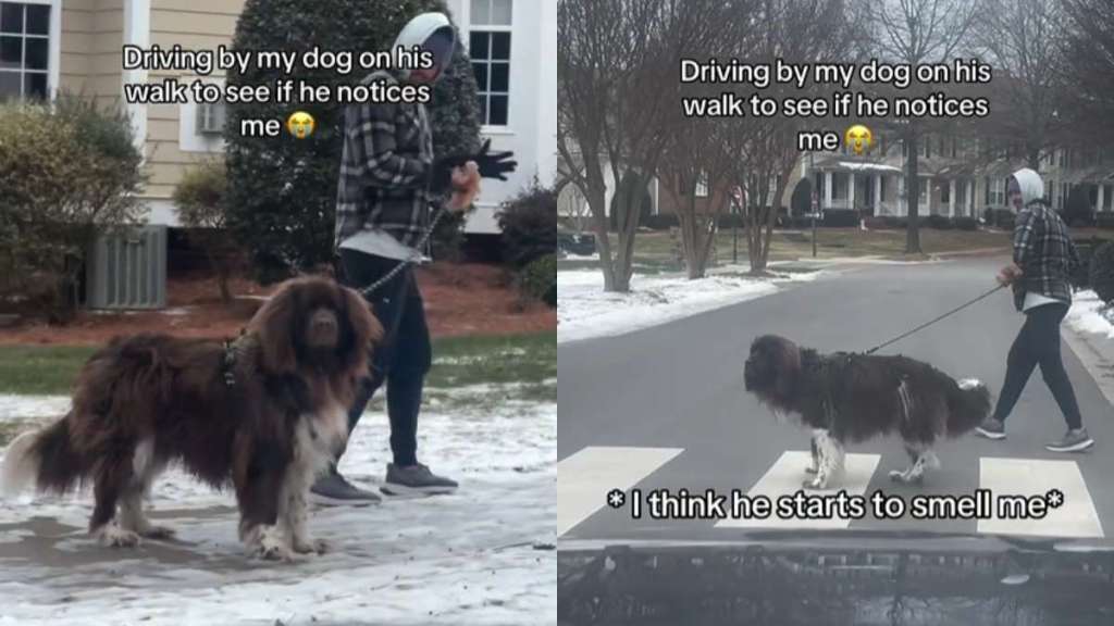An Instagram Reel shared by @chewythenewfoundland shows Chewy, a fluffy Newfoundland, experiencing a moment of recognition that quickly turns emotional. In the video, the dog is out for a walk with his dad, calmly strolling along and seemingly focused on the path ahead. Meanwhile, his mom drives past in a car, curious to see whether her pup will notice her at all.