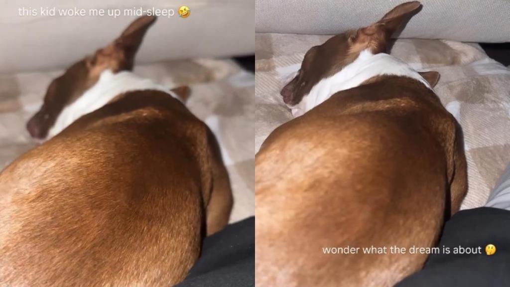 This sweet pup accidentally became the cutest yet most chaotic alarm clock when he woke his dad up with his sleep noises. The moment was captured in a Reel and shared by @bugnbeann on Instagram.