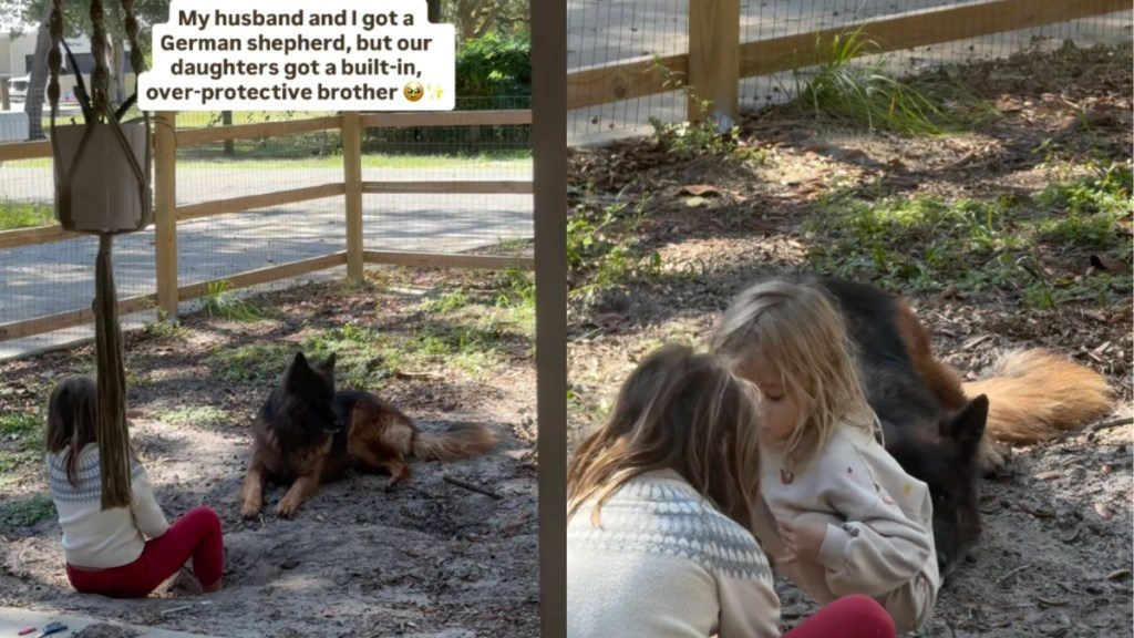 In a video from Instagram user @itsyaboy_moku, a dog named Moku Boy takes care of his tiny human siblings in the most adorable manner. The German Shepherd in the video sits outside with two toddlers and keeps himself posted right in front of them, like a big brother on watch. The on-screen text states, “My husband and I got a German shepherd, but our daughters got a built-in, over-protective brother.” Meanwhile, the caption states, “His eyes are always on them.”