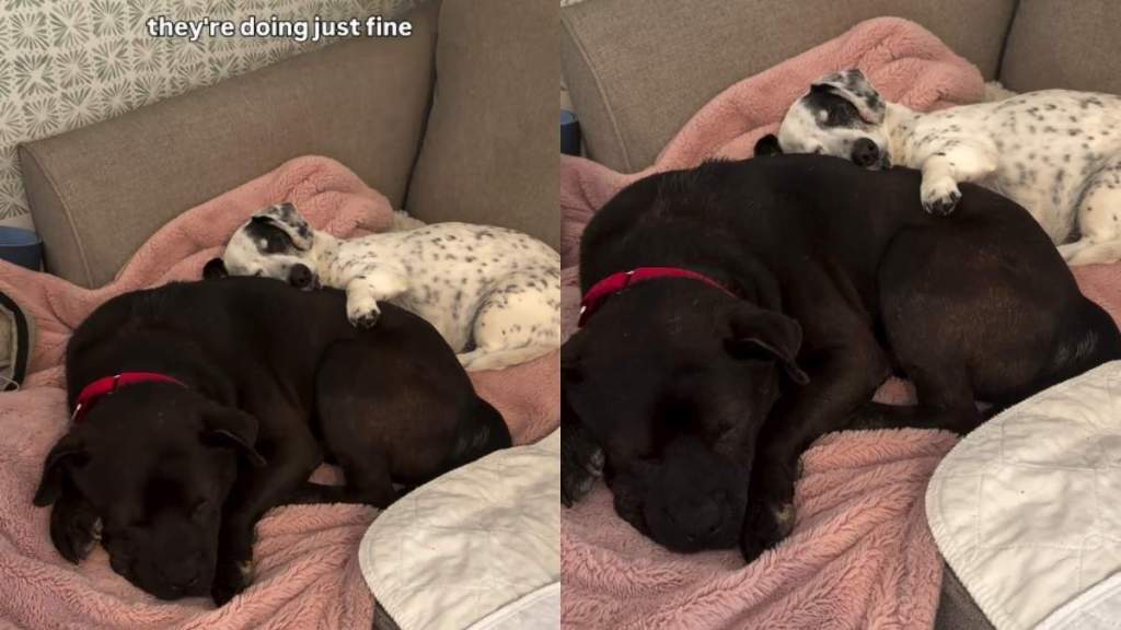 She captures a heartwarming moment when she enters a room where both the fur babies are sleeping comfortably on a couch. The part that amuses the owner is that her fur baby has almost taken the other dog in his embrace. In the clip, the woman mentions that her pooch’s name is Brody, while Norbert is the foster dog who is “up for adoption.”